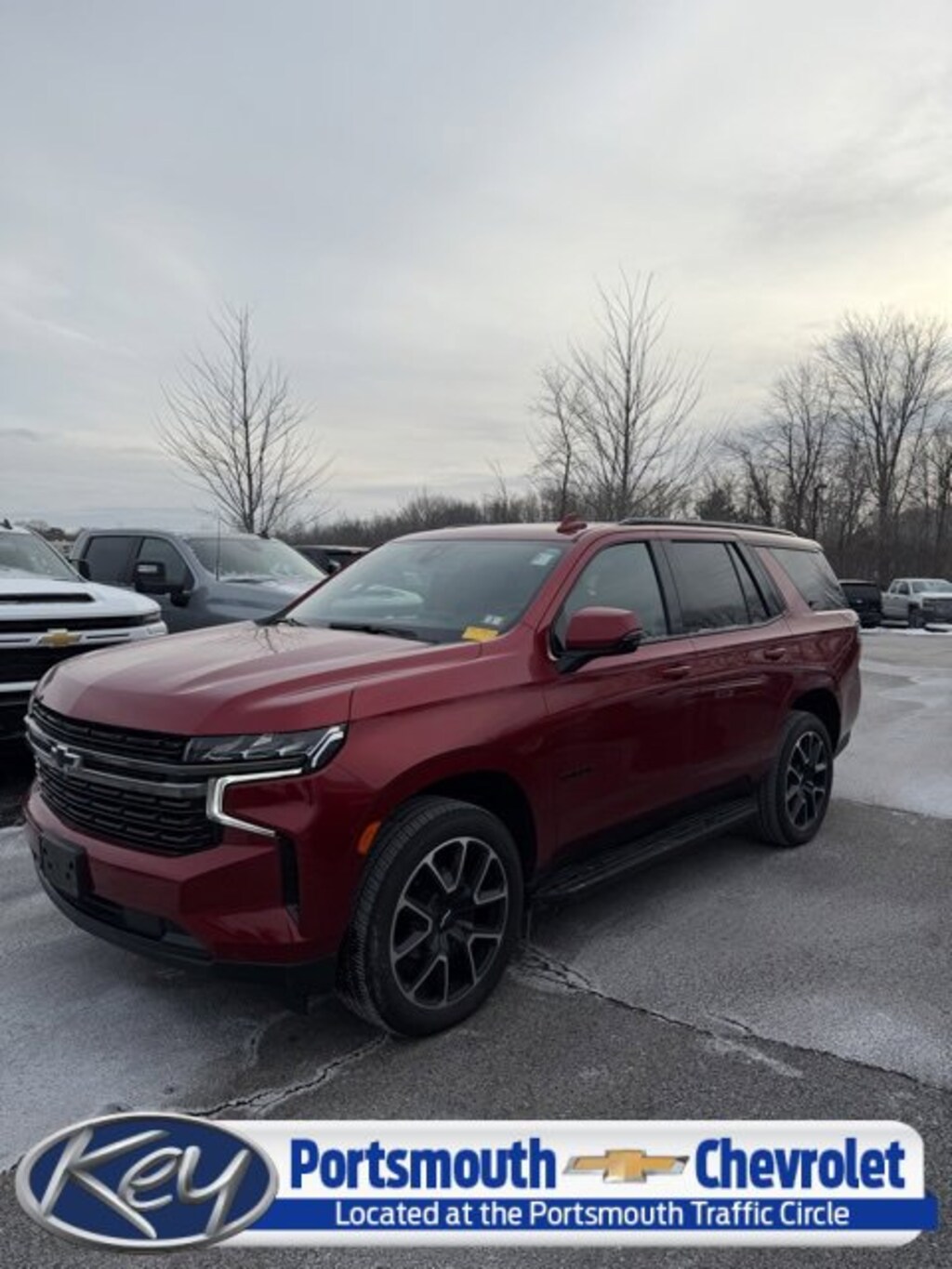 Portsmouth Chevrolet is proud to present you with another True Market Priced Pre-Owned Vehicle. Transparent Pricing Of $ 53999 !! This 2022 Chevrolet Tahoe RST is loaded with the following Factory Options: 4WD and Jet Black/Victory Red Leather Driver Alert Package (Lane Change Alert w/Side Blind Zone Alert and Rear Cross Traffic Alert), License Plate Front Mounting Package, Luxury Package (2nd Row Pwr Release 60/40 Split-Folding Bench Seat, 3rd Row 60/40 Power-Folding Split-Bench Seat, HD Surround Vision, Heated 2nd Row Outboard Seats, Heated Steering Wheel, Memory Settings, Outside Heated Power-Adjustable Mirrors, Power Tilt & Telescopic Steering Column, and Rear Pedestrian Alert), Preferred Equipment Group 1SP (1st & 2nd Row Color-Keyed Carpeted Floor Mats, Auto-Dimming Inside Rear-View Mirror, Automatic Stop/Start, Bose 9-Speaker Stereo Audio System Feature, Bright Front & Rear Door Sill Plates, Color-Keyed Carpeting Floor Covering, Driver & Front Outboard Passenger Airbags, Enhanced Driver Information Center, Floor Console w/Storage Area, Hands-Free Rear Power Programmable Liftgate, Infotainment Display, Leather-Wrapped Steering Wheel, LED Daytime Running Lamps, Memory Settings for Driver, Remote Start, SiriusXM Radio w/360L, Start/Stop System Disable Button, Universal Home Remote, and Wireless Charging), 4WD, Jet Black/Victory Red Leather, 10-Way Power Driver & Passenger Seat Adjusters, 3.23 Rear Axle Ratio, 3rd row seats: split-bench, 4-Wheel Disc Brakes, 9 Speakers, ABS brakes, Air Conditioning, Alloy wheels, AM/FM radio: SiriusXM with 360L, Apple CarPlay/Android Auto, Auto High-beam Headlights, Auto-dimming Rear-View mirror, Automatic temperature control, Brake assist, Bumpers: body-color, Compass, Delay-off headlights, Driver door bin, Driver vanity mirror, Dual front impact airbags, Dual front side impact airbags, Electronic Stability Control, Emergency communication system: OnStar and Chevrolet connected services capable, Four wheel independent suspension, Front anti-roll bar, Front Bucket Seats, Front Center Armrest, Front dual zone A/C, Front High-Back Reclining Bucket Seats, Front reading lights, Fully automatic headlights, Garage door transmitter, Heated door mirrors, Heated Driver & Front Passenger Seats, Heated front seats, Illuminated entry, Leather steering wheel, Low tire pressure warning, Memory seat, Navigation System, Not Equipped w/Front & Rear Park Assist, Not Equipped w/Steering Column Lock, Occupant sensing airbag, Outside temperature display, Overhead airbag, Overhead console, Panic alarm, Passenger door bin, Passenger vanity mirror, Perforated Leather Seat Trim, Power door mirrors, Power driver seat, Power Liftgate, Power passenger seat, Power Release 2nd Row Bucket Seats, Power steering, Power windows, Premium audio system: Chevrolet Infotainment System 3, Premium Smooth Ride Suspension, Radio: Chevrolet Infotainment 3 Premium System, Rain sensing wipers, Rear air conditioning, Rear anti-roll bar, Rear reading lights, Rear seat center armrest, Rear window defroster, Rear window wiper, Remote keyless entry, Roof rack: rails only, Security system, Set of 4 Wheel Locks (LPO), Speed control, Speed-sensing steering, Split