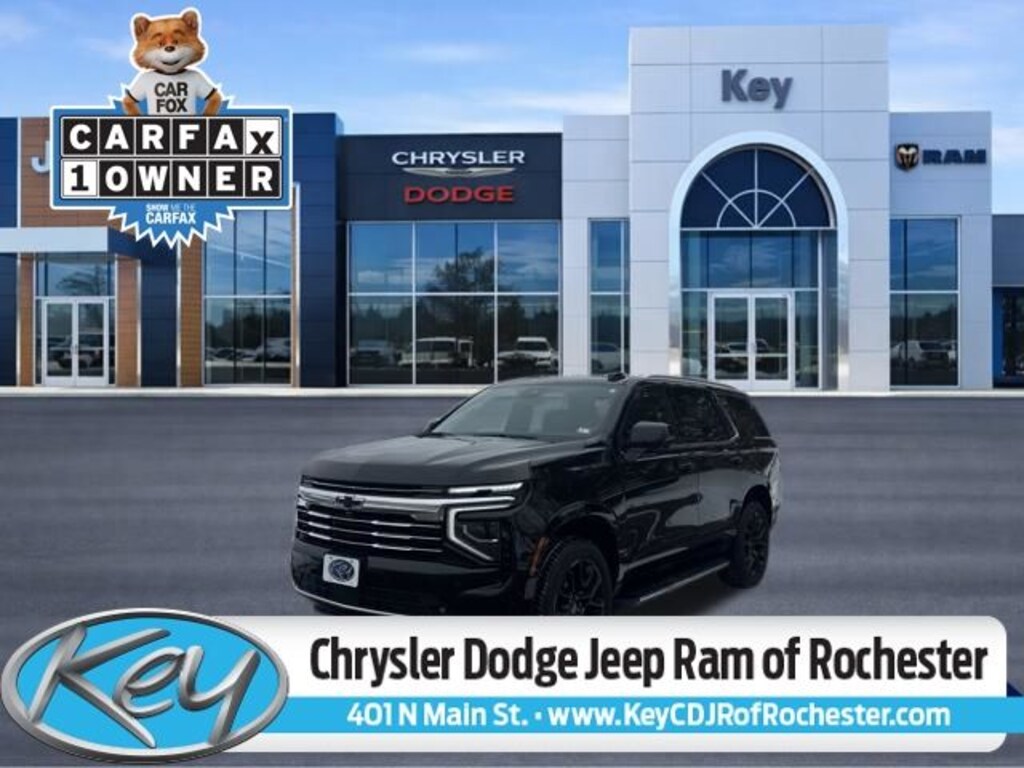 Key Chrysler Dodge Jeep Ram of Rochester is proud to present you with another True Market Priced Pre-Owned Vehicle. Transparent Pricing Of $ 62999 !! This 2025 Chevrolet Tahoe LT is loaded with the following Factory Options: 4WD and Black Leather Comfort Package (2nd Row Power Release 60/40 Split-Folding Bench Seat, 3rd Row 60/40 Power-Folding Split-Bench Seat, Bose 10-Speaker Centerpoint Surround Audio System Feature, Heated 2nd Row Outboard Seats, Heated Steering Wheel, LED Headlamps with LED Daytime Running Lamps, LED Tail Lamps, Memory Settings, and Outside Heated Power-Adjustable Mirrors), Dark Essentials Package (Black Name Plates and Front and Rear Black Bowtie Emblems), License Plate Front Mounting Package, Luxury Package (Auto-Dimming Inside Rear-View Mirror, Front LED Fog Lamps, and Universal Home Remote), Preferred Equipment Group 1LT (1st and 2nd Row Color-Keyed Carpeted Floor Mats, 3-Spoke Wrapped Steering Wheel, 3rd Row Manual 60/40 Split-Folding Bench Seats, Color-Keyed Carpeting Floor Covering, Floor Console with Storage Area, Front Bucket Seats, Front Pedestrian and Bicyclist Braking, Frontal Driver and Outboard Passenger Airbags, Memory Settings For Driver, Rear Power Liftgate, Remote Start, SiriusXM with 360L Trial Subscription, USB Ports, and Wireless Phone Charging), 4WD, Black Leather, 2-Way Power Driver Lumbar Seat Adjuster, 2-Way Power Front Passenger Lumbar Seat Adjuster, 22" Multi-Spoke Gloss Black Wheels, 3.23 Rear Axle Ratio, 3rd row seats: split-bench, 4-Wheel Disc Brakes, 6 Speakers, 6-Speaker Audio System Feature, 8-Way Power Driver Seat Adjuster, 8-Way Power Front Passenger Seat Adjuster, ABS brakes, Air Conditioning, Alloy wheels, AM/FM radio: SiriusXM with 360L, Apple CarPlay/Android Auto, Auto High-beam Headlights, Automatic temperature control, Black Center Caps, Black Lug Nuts, Black Mirror Caps, Brake assist, Bumpers: body-color, Compass, Delay-off headlights, Driver door bin, Driver vanity mirror, Dual front impact airbags, Dual front side impact airbags, Dual-Pane Power Panoramic Sunroof, Electronic Stability Control, Emergency communication system: OnStar and Chevrolet connected services capable, Exterior Parking Camera Rear, Four wheel independent suspension, Front anti-roll bar, Front Center Armrest, Front dual zone A/C, Front reading lights, Fully automatic headlights, Heated door mirrors, Heated Driver and Front Passenger Seats, Heated front seats, Illuminated entry, Leather-Appointed Seat Trim, Low tire pressure warning, Memory seat, Navigation system: Google built-in compatibility (select service plan required, terms and limitations apply), Occupant sensing airbag, Outside temperature display, Overhead airbag, Overhead console, Panic alarm, Passenger door bin, Passenger vanity mirror, Power door mirrors, Power driver seat, Power Liftgate, Power passenger seat, Power Release 2nd Row Bucket Seats, Power steering, Power windows, Premium audio system: Chevrolet Infotainment 3 Premium, Premium Smooth Ride Suspension, Radio data system, Radio: 17.7" Diagonal Advanced Color LCD Display, Rain sensing wipers, Rear air conditioning, Rear anti-roll bar, Rear reading lights, Rear seat center armrest, Rear window defroster, Rear window wiper, Remote keyless entry, Security system, Speed control, Speed-sensing steering, Split folding rear seat, Spoiler, Steering wheel mounted audio controls, Tachometer, Telescoping steering wheel, Tilt steering wheel, Traction control, Trip computer, Variably in