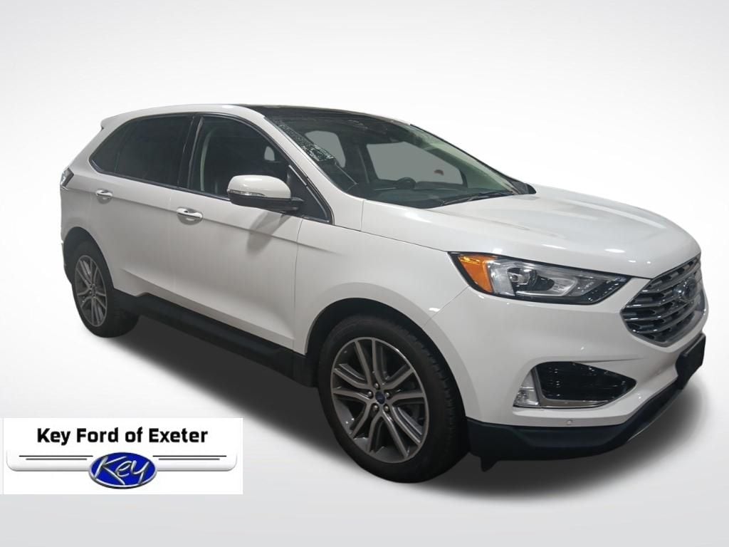 KEY FORD OF EXETER is proud to present you with another True Market Priced Pre-Owned Vehicle. Transparent Pricing Of $ 26199 !! This 2021 Ford Edge Titanium is loaded with the following Factory Options: AWD Equipment Group 300A, Ford Co-Pilot360 Assist+ (Adaptive Cruise Control w/Stop & Go, Connected Built-In Navigation, Evasive Steering Assist, and Lane Centering), AWD, 12 Speakers, 3.80 Axle Ratio, 4-Wheel Disc Brakes, ABS brakes, Air Conditioning, Alloy wheels, AM/FM radio: SiriusXM with 360L, Auto High-beam Headlights, Auto-dimming Rear-View mirror, Automatic temperature control, Brake assist, Bumpers: body-color, Compass, Delay-off headlights, Driver door bin, Driver vanity mirror, Dual front impact airbags, Dual front side impact airbags, Electronic Stability Control, Emergency communication system: SYNC 4 911 Assist, FordPass Connect, Four wheel independent suspension, Front & Rear Floor Liners w/o Carpet Mats, Front anti-roll bar, Front Bucket Seats, Front Center Armrest w/Storage, Front dual zone A/C, Front fog lights, Front License Plate Bracket, Front reading lights, Fully automatic headlights, Garage door transmitter, Heated door mirrors, Heated front seats, Heated steering wheel, Illuminated entry, Knee airbag, Leather-Trimmed Heated Sport Bucket Seats, Low tire pressure warning, Memory seat, Occupant sensing airbag, Outside temperature display, Overhead airbag, Overhead console, Panic alarm, Panoramic Vista Roof, Passenger door bin, Passenger vanity mirror, Power door mirrors, Power driver seat, Power Liftgate, Power passenger seat, Power steering, Power windows, Radio: B&O Sound System by Bang & Olufsen, Rain sensing wipers, Rear anti-roll bar, Rear reading lights, Rear seat center armrest, Rear window defroster, Rear window wiper, Remote keyless entry, Security system, SiriusXM w/360L, Speed control, Speed-Sensitive Wipers, Split folding rear seat, Spoiler, Steering wheel mounted audio controls, SYNC 4A w/Enhanced Voice Recognition, Tachometer, Telescoping steering wheel, Tilt steering wheel, Traction control, Trip computer, Turn signal indicator mirrors, Variably intermittent wipers, Wheels: 19" Luster Nickel-Painted Aluminum, and Wheels: 20" Bright-Machined Aluminum!!