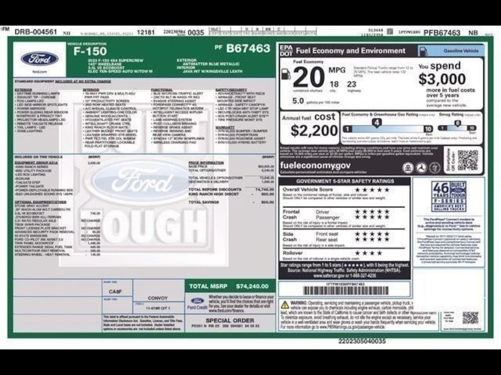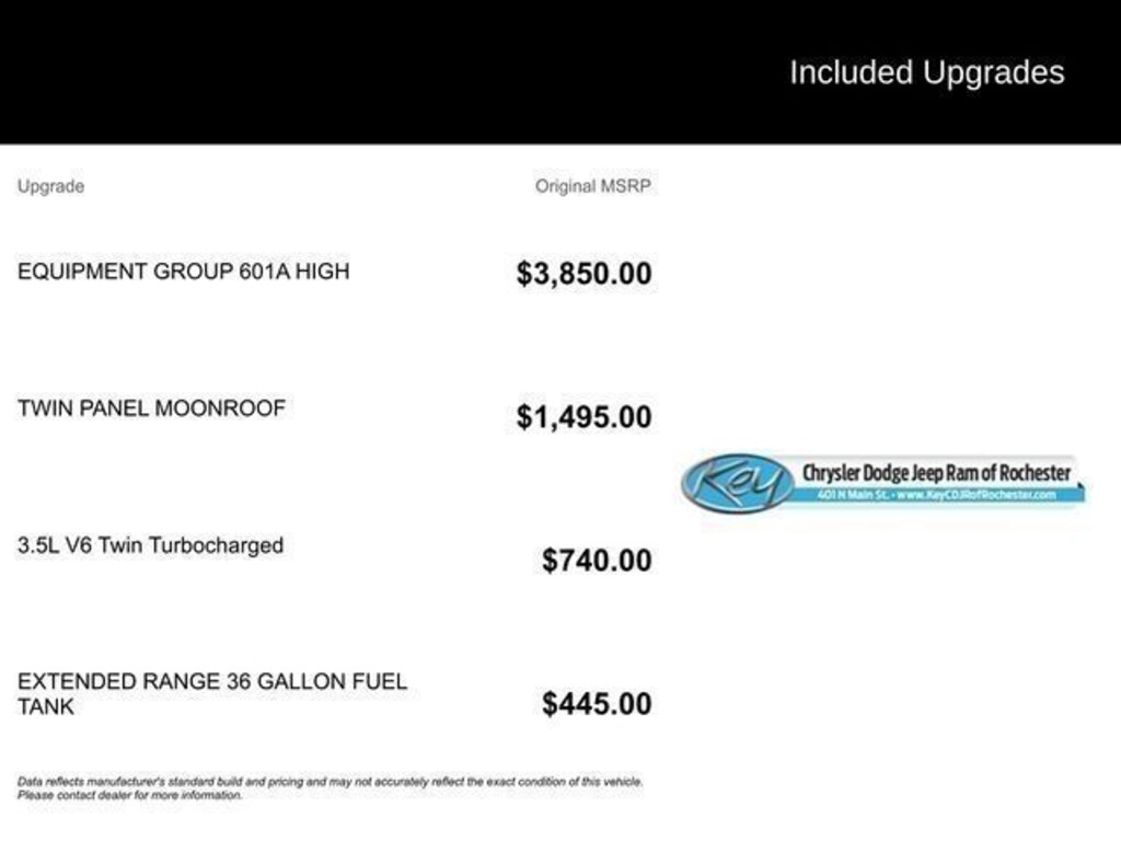 Key Chrysler Dodge Jeep Ram of Rochester is proud to present you with another True Market Priced Pre-Owned Vehicle. Transparent Pricing Of $ 52495 !! This 2023 Ford F-150 King Ranch is loaded with the following Factory Options: 4WD Equipment Group 601A High (Power-Deployable Running Boards), 4WD, 20" Machined-Aluminum Wheels, 3.31 Axle Ratio, 4-Wheel Disc Brakes, 8 Speakers, ABS brakes, Adjustable pedals, Air Conditioning, Alloy wheels, AM/FM radio: SiriusXM with 360L, Auto High-beam Headlights, Auto tilt-away steering wheel, Auto-dimming door mirrors, Auto-dimming Rear-View mirror, Automatic temperature control, Brake assist, Class IV Trailer Hitch Receiver, Compass, Delay-off headlights, Driver door bin, Driver vanity mirror, Dual front impact airbags, Dual front side impact airbags, Electronic Stability Control, Emergency communication system: SYNC 4 911 Assist, Extended Range 36 Gallon Fuel Tank, Exterior Parking Camera Rear, Front anti-roll bar, Front Bucket Seats, Front Center Armrest, Front dual zone A/C, Front fog lights, Front License Plate Bracket, Front reading lights, Front wheel independent suspension, Fully automatic headlights, Garage door transmitter, Genuine wood console insert, Genuine wood dashboard insert, Genuine wood door panel insert, Heated door mirrors, Heated front seats, Heated rear seats, Heated steering wheel, Illuminated entry, Inclination/Intrusion Sensor Removal, Integrated Trailer Brake Controller, King Ranch Leather Bucket Seats, Low tire pressure warning, Memory seat, Multicontour Seats w/Active Motion Removal, Occupant sensing airbag, Outside temperature display, Overhead airbag, Overhead console, Panic alarm, Passenger door bin, Passenger vanity mirror, Pedal memory, Power door mirrors, Power driver seat, Power passenger seat, Power steering, Power windows, Radio data system, Radio: B&O Sound System by Bang & Olufsen, Rain sensing wipers, Rear reading lights, Rear seat center armrest, Rear step bumper, Rear window defroster, Remote keyless entry, Security system, Speed control, Speed-sensing steering, Split folding rear seat, Steering Wheel Heat Removal (DISC), Steering wheel memory, Steering wheel mounted audio controls, SYNC 4 w/Enhanced Voice Recognition, Tachometer, Telescoping steering wheel, Tilt steering wheel, Traction control, Trip computer, Turn signal indicator mirrors, Twin Panel Moonroof, Variably intermittent wipers, Ventilated front seats, and Voltmeter!!