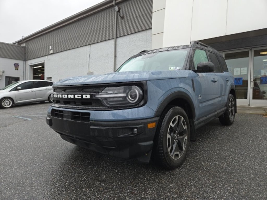 This Bronco Sport Outer Banks is nicely equipped with Equipment Group 300A, Ford Co-Pilot360 Assist+ (Evasive Steering Assist, Intelligent Adaptive Cruise Control w/Stop & Go, and Voice-Activated Touchscreen Navigation System), Tech Package (HD Radio, Universal Garage Door Opener (UGDO), and Wireless Charging Pad), 3.80 Axle Ratio, 4-Wheel Disc Brakes, 6 Speakers, ABS brakes, Air Conditioning, Alloy wheels, AM/FM radio: SiriusXM, AM/FM Stereo, Auto High-beam Headlights, Auto-dimming Rear-View mirror, Automatic temperature control, Brake assist, Cargo Management System, Compass, Delay-off headlights, Driver door bin, Driver vanity mirror, Dual front impact airbags, Dual front side impact airbags, Electronic Stability Control, Emergency communication system: SYNC 3 911 Assist, Engine Block Heater, Four wheel independent suspension, Front & Rear Splash Guards, Front anti-roll bar, Front Bucket Seats, Front Center Armrest, Front dual zone A/C, Front fog lights, Front reading lights, Fully automatic headlights, Heated door mirrors, Heated front seats, Heated steering wheel, Illuminated entry, Knee airbag, Low tire pressure warning, Memory seat, Occupant sensing airbag, Outside temperature display, Overhead airbag, Overhead console, Panic alarm, Passenger door bin, Passenger vanity mirror, Power door mirrors, Power driver seat, Power Moonroof, Power passenger seat, Power steering, Power windows, Premium-Trimmed Heated Sport Contour Bucket Seats, Radio data system, Rain sensing wipers, Rear anti-roll bar, Rear Parking Sensors, Rear reading lights, Rear seat center armrest, Rear window defroster, Rear window wiper, Remote keyless entry, Security system, SiriusXM, Speed control, Speed-sensing steering, Speed-Sensitive Wipers, Split folding rear seat, Steering wheel mounted audio controls, SYNC 3 Communications & Entertainment System, Tachometer, Telescoping steering wheel, Tilt steering wheel, Traction control, Trip computer, Variably intermittent wipers, and Wheels: 18" Ebony Black-Painted Aluminum.