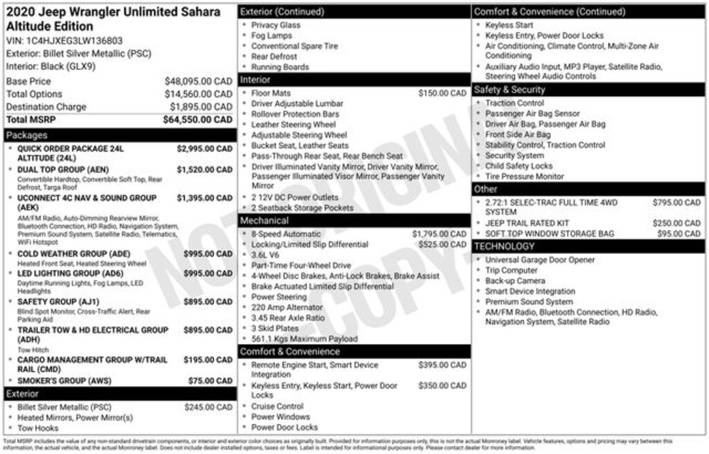 Key Chrysler Dodge Jeep Ram of Rochester is proud to present you with another True Market Priced Pre-Owned Vehicle. Transparent Pricing Of $ !! This 2020 Jeep Wrangler Unlimited Sahara Altitude is loaded with the following Factory Options: 8.4" Radio & Premium Audio Group (1-Year SiriusXM Guardian Trial, 4G LTE Wi-Fi Hot Spot, 5-Year SiriusXM Traffic Service, 5-Year SiriusXM Travel Link Service, 8.4" Touchscreen Display, Alpine Premium Audio System, Auto-Dimming Rear-View Mirror, Emergency/Assistance Call, For Details, Visit DriveUconnect.com, GPS Navigation, HD Radio, Radio: Uconnect 4C Nav w/8.4" Display, SiriusXM Traffic Plus, and SiriusXM Travel Link), Cargo Group w/Trail Rail System (Cargo Compartment Floor Mat), Cold Weather Group (Heated Front Seats and Heated Steering Wheel), Dual Top Group (Premium Black Sunrider Soft Top w/Dual Top Group), LED Lighting Group (Daytime Running Lamps LED Accents, Front LED Fog Lamps, LED Reflector Headlamps, and LED Taillamps), Safety Group (Blind Spot & Cross Path Detection and ParkSense Rear Park Assist System), Smoker's Group (Cigar Lighter and Removable Ash Tray), Trailer Tow & HD Electrical Group (240 Amp Alternator, 7 & 4 Pin Wiring Harness, 700 Amp Maintenance Free Battery, Auxiliary Switches, and Class II Receiver Hitch), 1-Year SiriusXM Radio Service, 3.45 Rear Axle Ratio, 4-Wheel Disc Brakes, 8 Speakers, ABS brakes, Air Conditioning, Alloy wheels, AM/FM radio: SiriusXM, Anti-Spin Differential Rear Axle, Apple CarPlay, Apple CarPlay/Android Auto, Automatic temperature control, Aux Battery, Body Color 3-Piece Hard Top, Brake assist, Cloth Low-Back Bucket Seats, Compass, Delay-off headlights, Driver door bin, Driver vanity mirror, Dual front impact airbags, Dual front side impact airbags, Electronic Stability Control, Front anti-roll bar, Front Bucket Seats, Front Center Armrest w/Storage, Front dual zone A/C, Front fog lights, Front reading lights, Fully automatic headlights, Garage door transmitter, Google Android Auto, GPS Antenna Input, Heated door mirrors, Heavy Duty Suspension w/Gas Shocks, Illuminated entry, Integrated roll-over protection, Integrated Voice Command w/Bluetooth, Jeep Trail Rated Kit, Leather steering wheel, Low tire pressure warning, MOPAR All-Weather Floor Mats (DISC), Non-Lock Fuel Cap w/o Discriminator, Occupant sensing airbag, Outside temperature display, Panic alarm, ParkView Rear Back-Up Camera, Passenger door bin, Passenger vanity mirror, Power door mirrors, Power steering, Power windows, Radio data system, Radio: Uconnect 4 w/7" Display, Rear anti-roll bar, Rear reading lights, Remote keyless entry, Remote Proximity Keyless Entry, Remote Start System, Security system, Soft Top Window Storage Bag, Speed control, Split folding rear seat, Steering wheel mounted audio controls, Stop-Start Dual Battery System, Tachometer, Telescoping steering wheel, Tilt steering wheel, Traction control, Trip computer, Variably intermittent wipers, Voltmeter, and Wheels: 18" x 7.5" Polished w/Gray Spokes!!