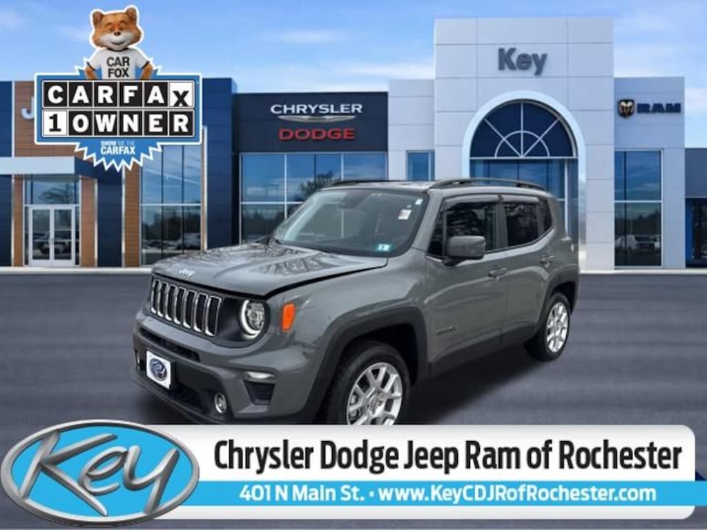 Key Chrysler Dodge Jeep Ram of Rochester is proud to present you with another True Market Priced Pre-Owned Vehicle. Transparent Pricing Of $ 19499 !! This 2021 Jeep Renegade Latitude is loaded with the following Factory Options: Luxury Group I (DISC) (1-Year SiriusXM Guardian Trial, 5-Year SiriusXM Traffic Service, 5-Year SiriusXM Travel Link Service, 8.4" Touchscreen Display, Adaptive Speed Control, Auto High Beam Headlamp Control, Bi-Function LED Projector Headlamps, Dedicated LED Daytime Running Lamps, For Details, Visit DriveUconnect.com, GPS Navigation, HD Radio, LED Cornering Fog Lamps, LED Taillamps, P&P Park & Unpark Assist System, Radio: Uconnect 4C Nav w/8.4" Display, SiriusXM Traffic Plus, and SiriusXM Travel Link), Passive Entry Remote Start Package (Keyless Entry w/Panic Alarm and Remote Start System), Quick Order Package 22B (DISC), 17" x 7.0" Aluminum Wheels, 3.734 Final Drive Ratio, 4-Wheel Disc Brakes, 6 Speakers, ABS brakes, Air Conditioning, Alloy wheels, AM/FM radio: SiriusXM, Anti-whiplash front head restraints, Apple CarPlay/Android Auto, Automatic temperature control, Brake assist, Compass, Delay-off headlights, Driver door bin, Driver vanity mirror, Dual front impact airbags, Dual front side impact airbags, Electronic Stability Control, Emergency communication system: SiriusXM Guardian, Four wheel independent suspension, Front anti-roll bar, Front Bucket Seats, Front Center Armrest, Front dual zone A/C, Front fog lights, Front reading lights, Fully automatic headlights, Heated door mirrors, Illuminated entry, Knee airbag, Low tire pressure warning, Manual Adjust 4-Way Front Passenger Seat, Normal Duty Suspension, Occupant sensing airbag, Outside temperature display, Overhead airbag, Panic alarm, ParkView Rear Back-Up Camera, Passenger door bin, Passenger vanity mirror, Power door mirrors, Power steering, Power windows, Premium Cloth Bucket Seats, Radio data system, Radio: Uconnect 4 w/7" Display, Rear anti-roll bar, Rear window defroster, Rear window wiper, Remote keyless entry, Roof rack: rails only, Security system, Speed control, Split folding rear seat, Spoiler, Steering wheel mounted audio controls, Tachometer, Telescoping steering wheel, Tilt steering wheel, Traction control, Trip computer, Variably intermittent wipers, and Voltmeter!!