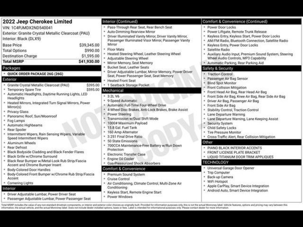 Key Chrysler Dodge Jeep Ram of Rochester is proud to present you with another True Market Priced Pre-Owned Vehicle. Transparent Pricing Of $ 26285 !! This 2022 Jeep Cherokee Limited is loaded with the following Factory Options: Quick Order Package 26G, 10 Speakers, 3.251 Final Drive Ratio, 4-Wheel Disc Brakes, 4G LTE Wi-Fi Hot Spot, 8.4" Touchscreen Display, ABS brakes, Air Conditioning, Alloy wheels, AM/FM radio: SiriusXM, Anti-whiplash front head restraints, Apple CarPlay, Apple CarPlay/Android Auto, Audio memory, Auto High-beam Headlights, Auto-dimming Rear-View mirror, Automatic temperature control, Brake assist, Bumpers: body-color, Compass, Delay-off headlights, Driver door bin, Driver vanity mirror, Dual Bright Exhaust Tips, Dual front impact airbags, Dual front side impact airbags, Electronic Stability Control, Engine Oil Cooler, For Details, Visit DriveUconnect.com, For More Info, Call 800-643-2112, Four wheel independent suspension, Front anti-roll bar, Front Bucket Seats, Front Center Armrest, Front dual zone A/C, Front fog lights, Front License Plate Bracket, Front reading lights, Fully automatic headlights, Garage door transmitter, Google Android Auto, GPS Antenna Input, Heated door mirrors, Heated front seats, Heated steering wheel, Illuminated entry, Knee airbag, Leather Shift Knob, Liquid Titanium Door Trim Appliques, Low tire pressure warning, Memory seat, Normal Duty Suspension, Occupant sensing airbag, Outside temperature display, Overhead airbag, Overhead console, Panic alarm, ParkView Rear Back-Up Camera, Passenger door bin, Passenger vanity mirror, Piano Black Interior Accents, Power door mirrors, Power driver seat, Power Liftgate, Power moonroof, Power passenger seat, Power steering, Power windows, Premium Leather Trimmed Bucket Seats, Radio data system, Radio: Uconnect 4 w/8.4" Display, Rain sensing wipers, Rear anti-roll bar, Rear reading lights, Rear seat center armrest, Rear side impact airbag, Rear window defroster, Rear window wiper, Remote keyless entry, Roof rack: rails only, Security system, SiriusXM Radio Service, SiriusXM Satellite Radio, Speed control, Speed-sensing steering, Split folding rear seat, Spoiler, Steering wheel mounted audio controls, Stop-Start Multiple VSM System, Tachometer, Telescoping steering wheel, Tilt steering wheel, Traction control, Trip computer, Turn signal indicator mirrors, USB Host Flip, Variably intermittent wipers, Voltmeter, and Wheels: 18" x 7.0" Painted Diamond Cut Aluminum!!