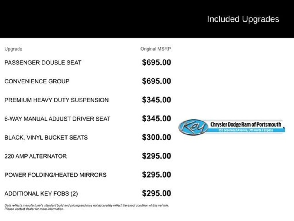 Key Chrysler Dodge Ram of Portsmouth is proud to present you with another True Market Priced Pre-Owned Vehicle. Transparent Pricing Of $ !! This 2023 Ram ProMaster 3500 High Roof is loaded with the following Factory Options: Convenience Group (Ambient LED Interior Lighting, Cargo Net, Shelf Above Roof Trim, and Underseat Storage Tray), Premium Heavy Duty Suspension (Rear Heavy Duty Stabilizer Bar), Quick Order Package 22A, 115V Auxiliary Power Outlet, 12V Rear Auxiliary Power Outlet, 220 Amp Alternator, 4 Speakers, 4-Wheel Disc Brakes, 4.08 Axle Ratio, 6-Way Manual Adjust Driver Seat, ABS brakes, Additional Key Fobs (2), Air Conditioning, AM/FM radio: SiriusXM, Apple CarPlay/Android Auto, Black/Gray Seats, Bodyside moldings, Brake assist, Center Wheel Cap, Cloth Bucket Seats, Driver door bin, Driver Seat Armrest, Driver's Seat Mounted Armrest, Electronic Stability Control, Front anti-roll bar, Front Bucket Seats, Front Fog Lamps, Front License Plate Bracket, Front reading lights, Front wheel independent suspension, Heavy Duty Suspension, Illuminated entry, Low tire pressure warning, Manual 2-Way Driver Lumbar Adjust, Manual Folding Exterior Mirrors, Outside temperature display, Overhead airbag, Overhead console, ParkView Rear Back-Up Camera, Passenger door bin, Passenger Double Seat, Power Folding/Heated Mirrors, Power steering, Power windows, Radio: Uconnect 5 w/7" Display, Rear anti-roll bar, Rear Cargo LED Lamp, Remote keyless entry, Steering wheel mounted audio controls, Tachometer, Telescoping steering wheel, Traction control, Trip computer, Turn signal indicator mirrors, Variably intermittent wipers, and Wheels: 16" x 6.0" Steel!!