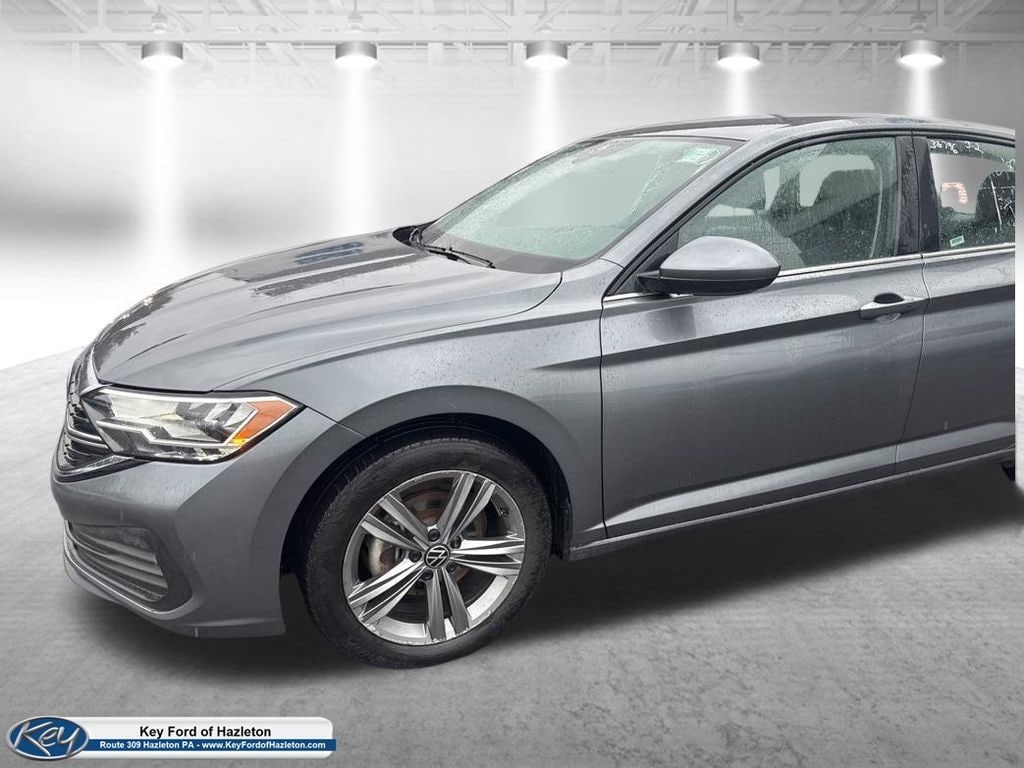 KEY FORD OF HAZLETON is proud to present you with another True Market Priced Pre-Owned Vehicle. Transparent Pricing Of $ 19495 !! This 2024 Volkswagen Jetta 1.5T SE is loaded with the following Factory Options: Storm Gray Artificial Leather Storm Gray Artificial Leather, 4 Speakers, 4-Wheel Disc Brakes, ABS brakes, Active Blind Spot Monitor, Air Conditioning, Alloy wheels, Auto-dimming Rear-View mirror, Automatic temperature control, Brake assist, Bumpers: body-color, Delay-off headlights, Driver door bin, Driver vanity mirror, Dual front impact airbags, Dual front side impact airbags, Electronic Stability Control, Emergency communication system: VW Car-Net Safe & Secure 5-year, Exterior Parking Camera Rear, Front anti-roll bar, Front Bucket Seats, Front Center Armrest, Front dual zone A/C, Front wheel independent suspension, Fully automatic headlights, Heated door mirrors, Heated Front Seats, Heated front seats, Illuminated entry, Leather Shift Knob, Leather steering wheel, Low tire pressure warning, Occupant sensing airbag, Outside temperature display, Overhead airbag, Overhead console, Panic alarm, Passenger door bin, Passenger vanity mirror, Power door mirrors, Power driver seat, Power steering, Power windows, Radio data system, Radio: MIB3 Composition Color w/6.5" Touchscreen, Rain sensing wipers, Rear anti-roll bar, Rear reading lights, Rear seat center armrest, Rear window defroster, Remote keyless entry, Speed control, Speed-sensing steering, Split folding rear seat, Steering wheel mounted audio controls, Tachometer, Telescoping steering wheel, Tilt steering wheel, Traction control, Trip computer, V-Tex Leatherette Seat Trim, Variably intermittent wipers, and Wheels: 17" Twin 5-Spoke Silver Painted Alloy!!